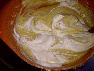 Beat until it looks like fluffy and yes this time they do look quite fluffy, not wet sand. Interesting ya? no? *shrugs*